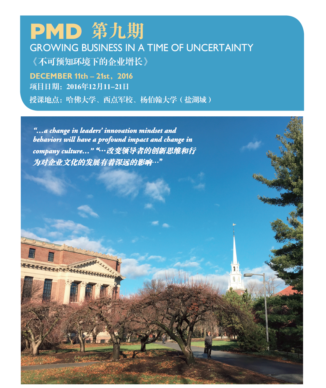 您現在的位置:首頁>培訓項目>PMD IX 《不可預知環境下的企業增長》